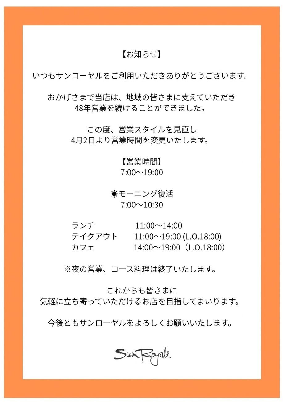 それに伴い、営業時間、営業スタイルが変わります。
